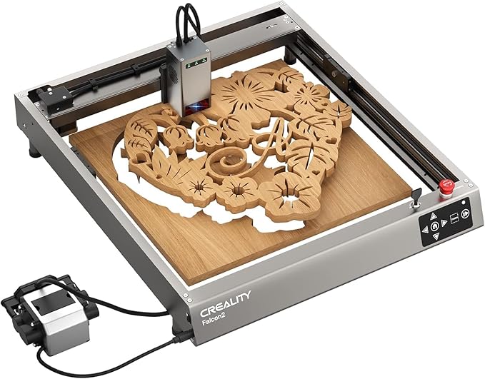 La Creality Falcon2 es la mejor opción si podés invertir un poco más y querés potencia real para cortar materiales más gruesos y grabar con mayor velocidad. Aquí van sus características principales: